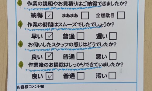 施主様 作業前の見積もり、説明が わかりやすくて、仕事も ていねいにして頂き有難うござい…