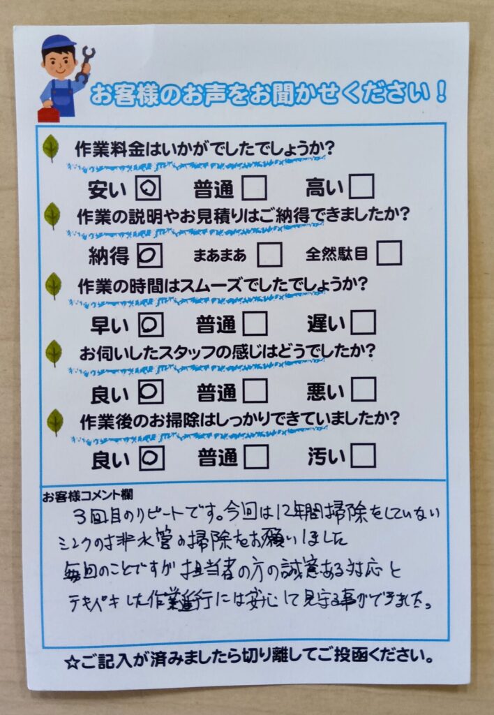 こちらのお客様は、排水管のお掃除のご依頼でした。