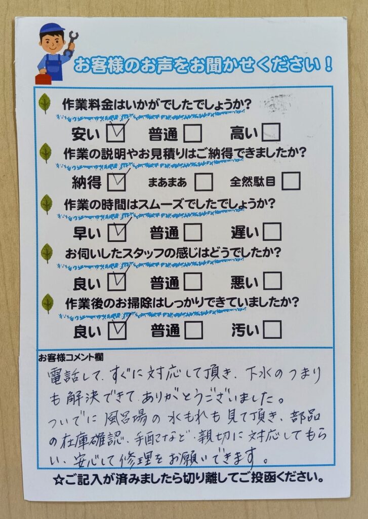HOME > ハタラク通信 > お客様の声 > 藤枝市音羽町 台所排水つまり