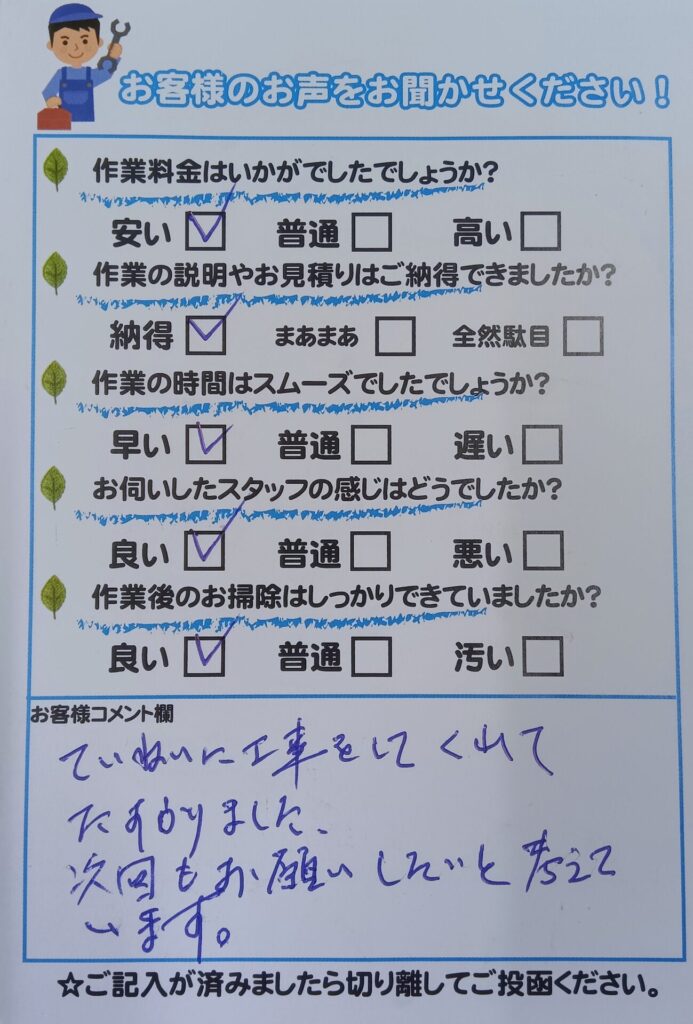 ていねいに工事をしてくれてたすかりました。