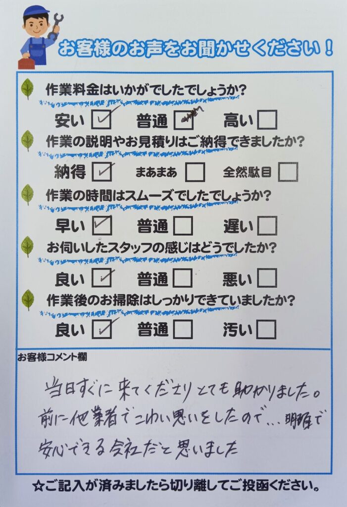 「他業者でこわい思いをした」とのことで依頼をされる際は不安だったと思いますが