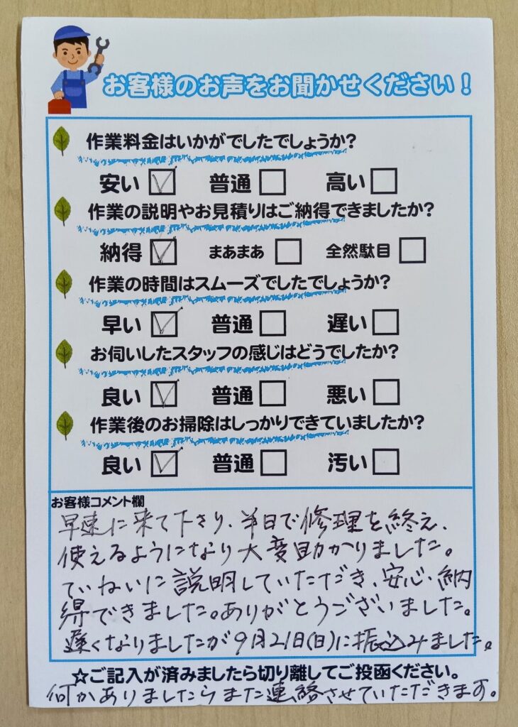 お客様のお言葉を励みに、今後も「親切・丁寧」に続けてまいります!(^^)!