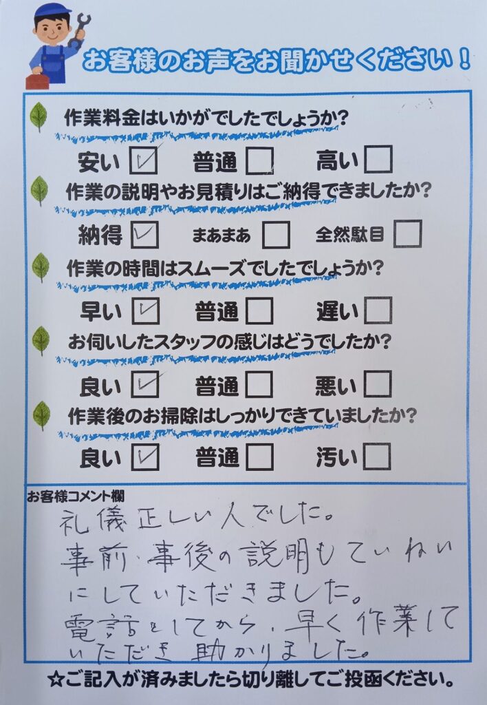 HOME > ハタラク通信 > お客様の声 > 藤枝市新南新屋 トイレつまり
