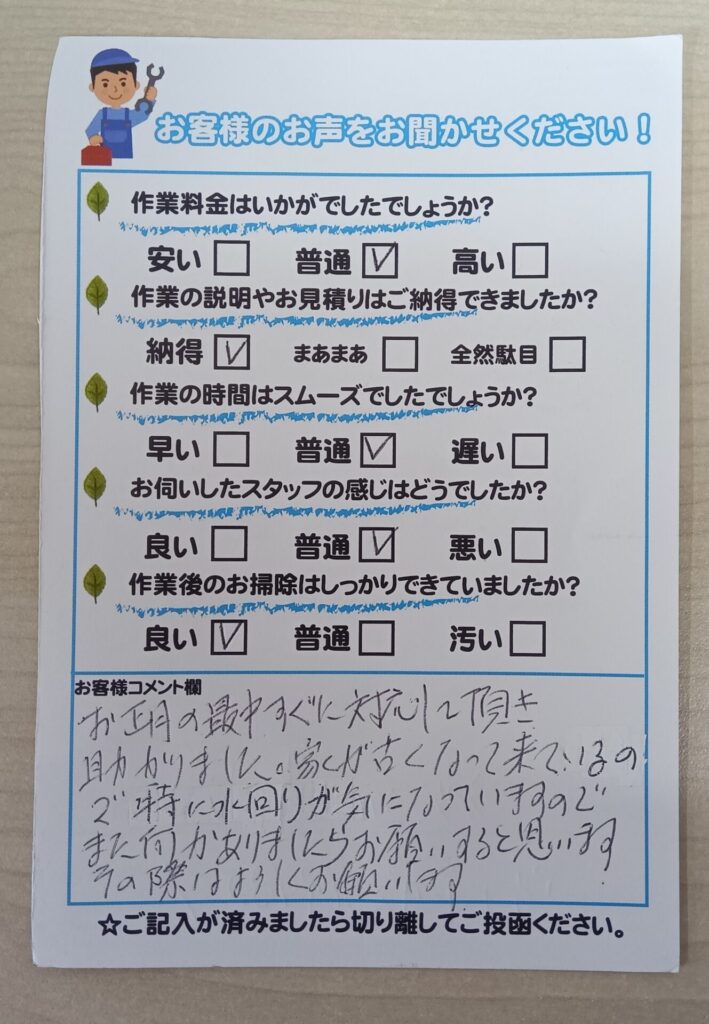お正月の最中すぐに対応して頂き助かりました。