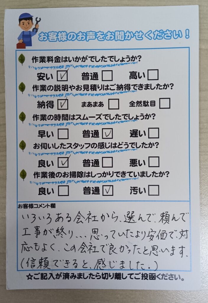 料金や対応についてご満足いただけたとのことで、安心いたしました。