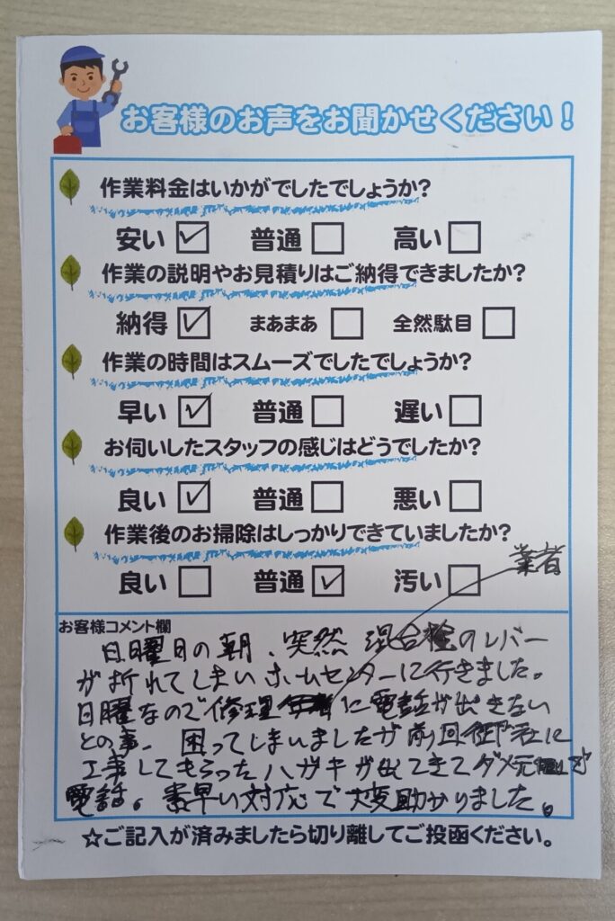 日曜日の朝、突然混合栓のレバーが折れてしまい、ホームセンターに行きました。
