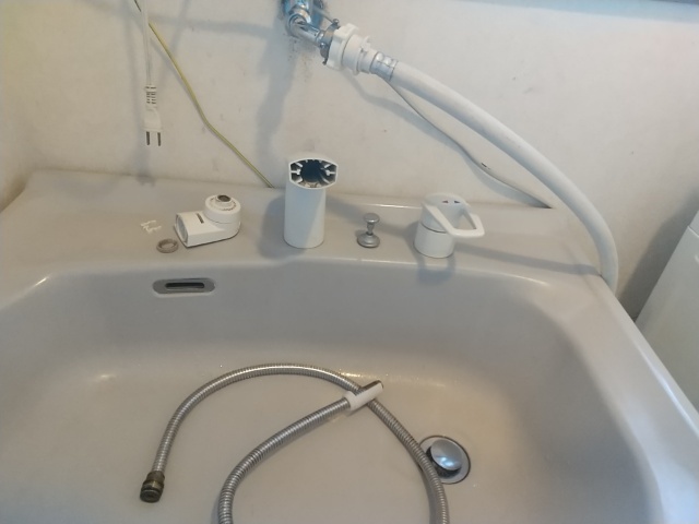 洗面水栓本体を分解し、既設のシャワーホースを取り外します。